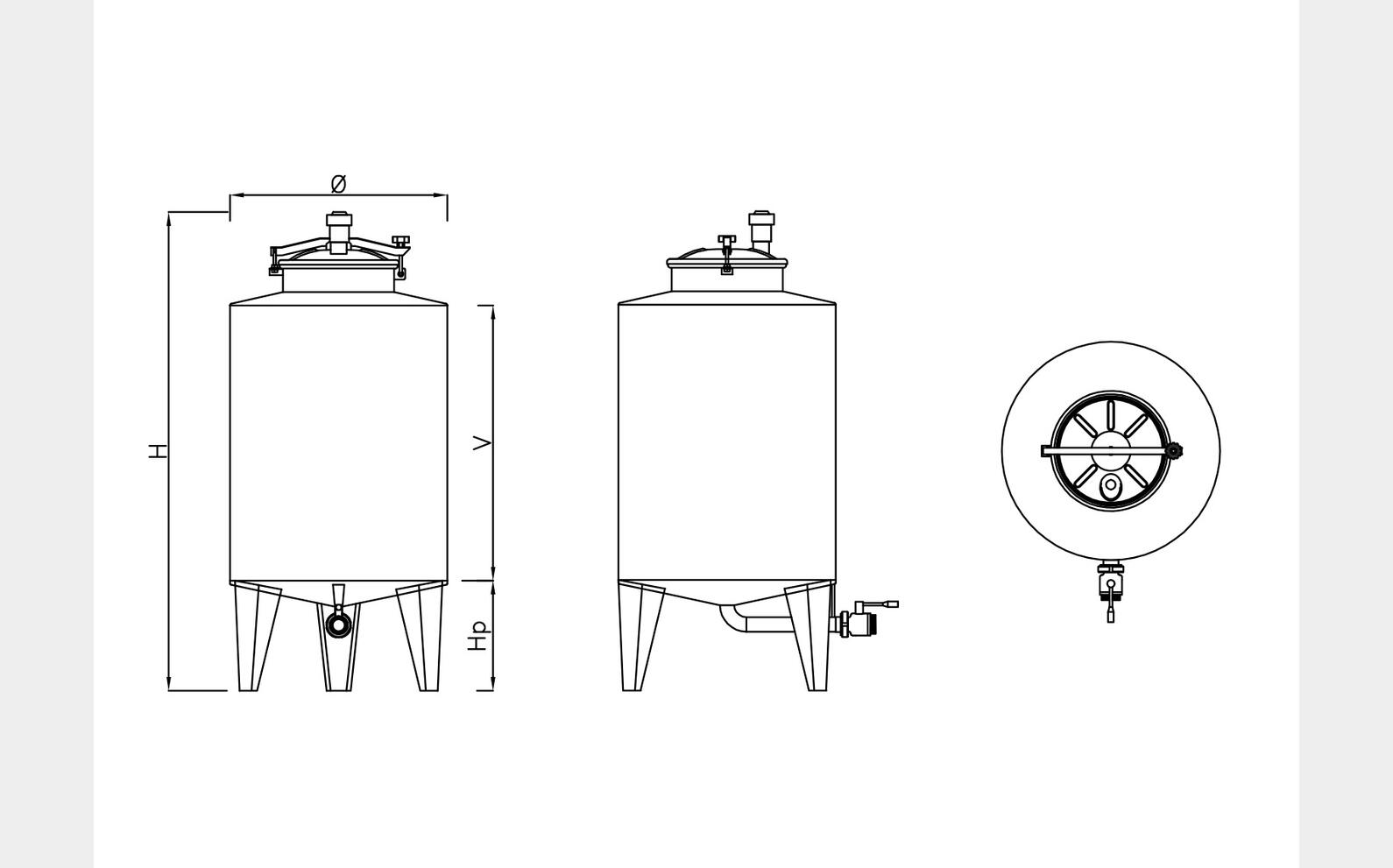 304 stainless steel tanks with conical bottoms (small model) - STOC B model - Cuve fond conique STOC B