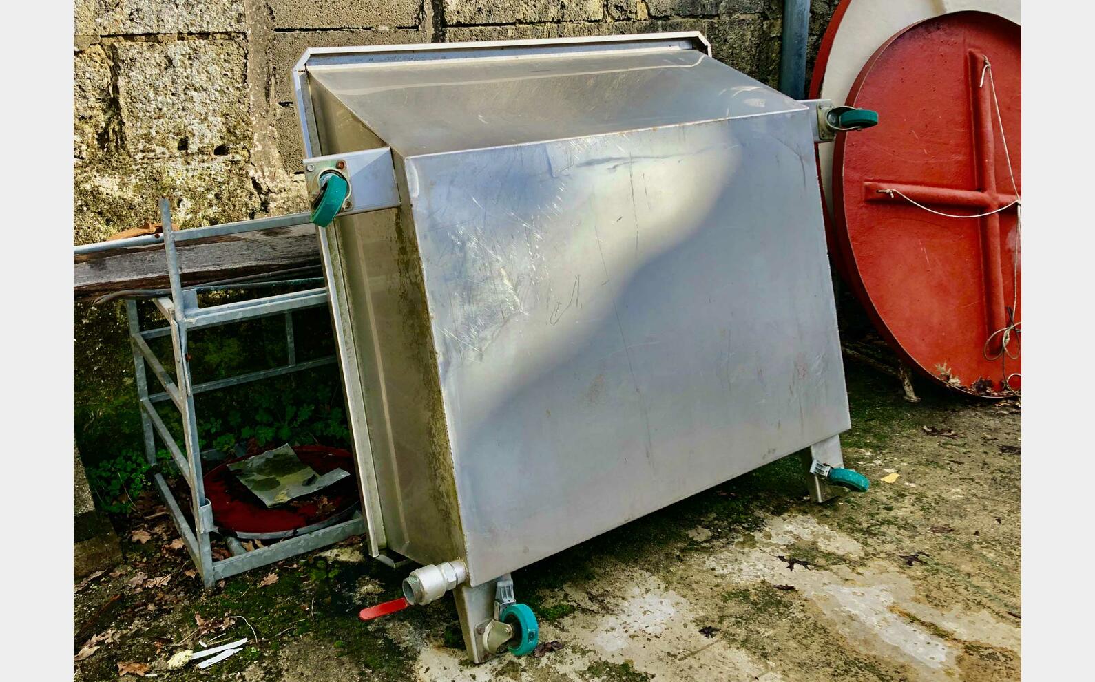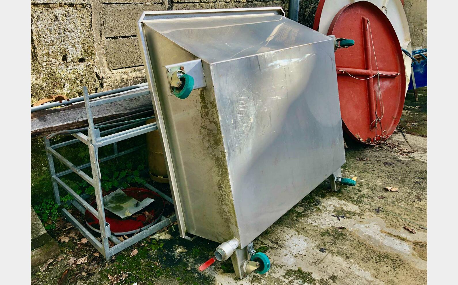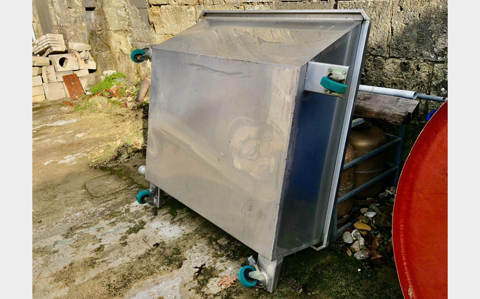 - Stainless steel juice container on wheels