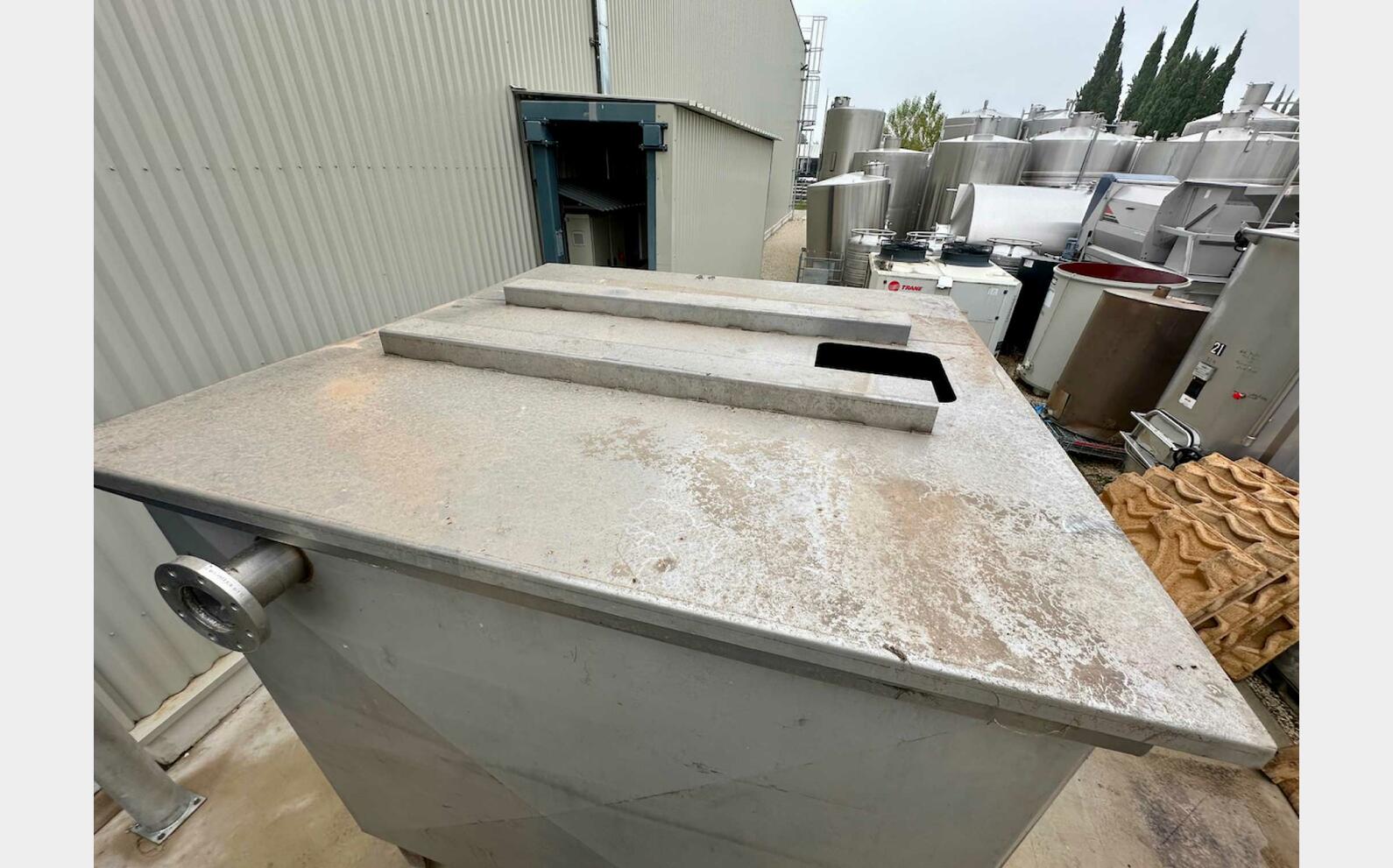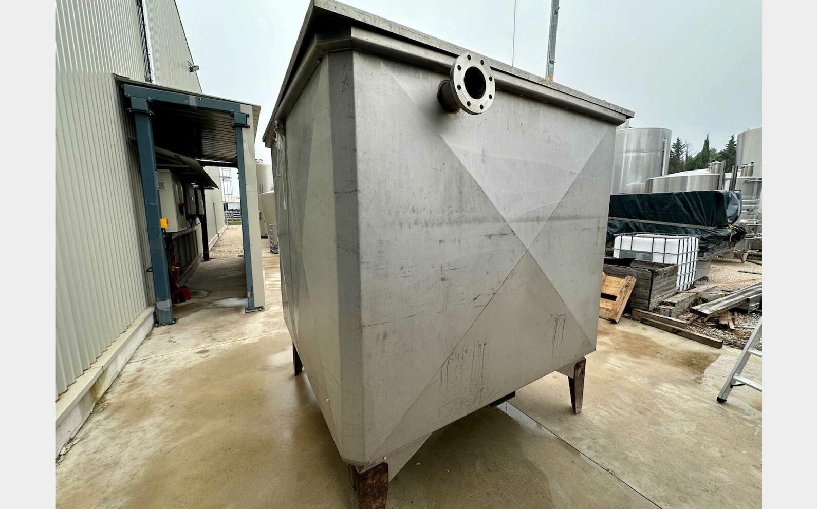 Rectangular 304 stainless steel tank - Sloping bottom on feet - 007414