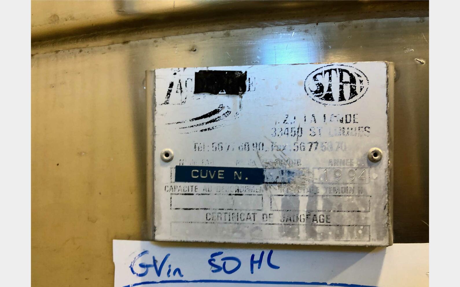 TECHNICAL FEATURES- Year 1994- Conical bottom- Boitard with total emptying valve- Partial drain- Rectangular door at bottom of shell- 4 cooling circuit towers