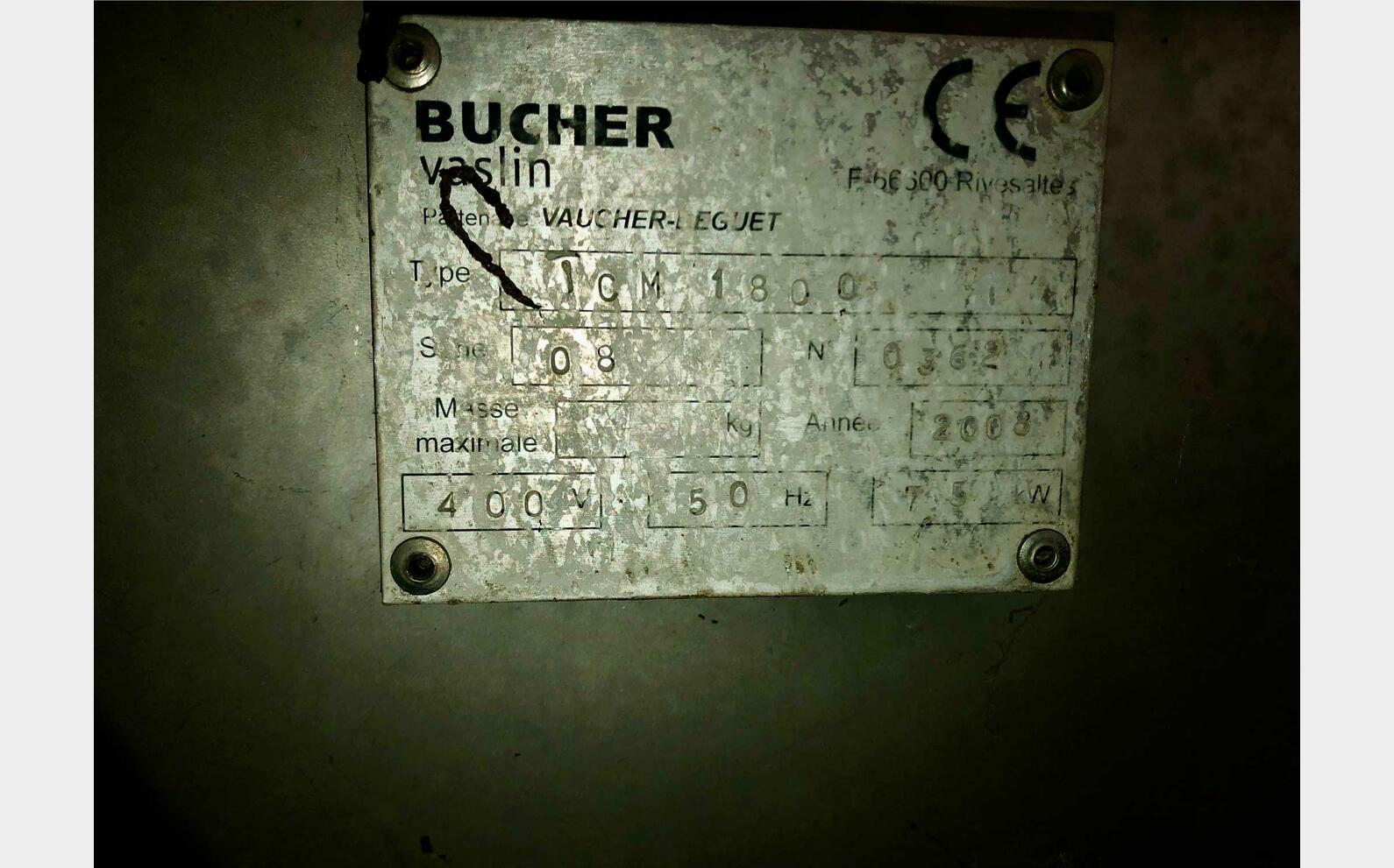 TECHNICAL FEATURES- Model : TCM 800- Motor : SEW Eurodrive 7,5 kW - R23,8 - 400 V- Output height: 6200 mm