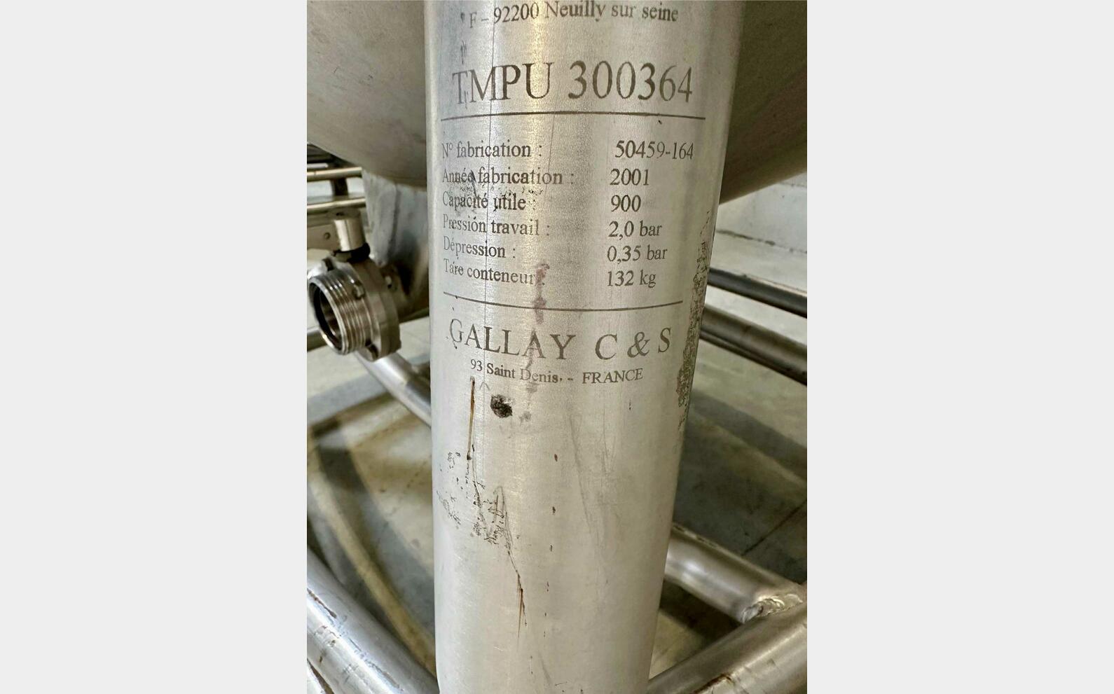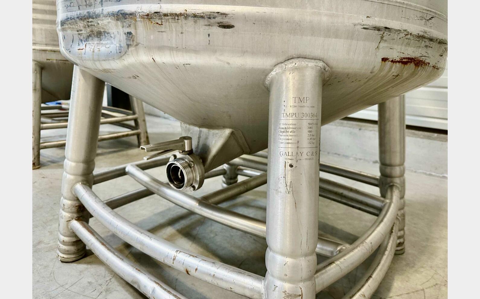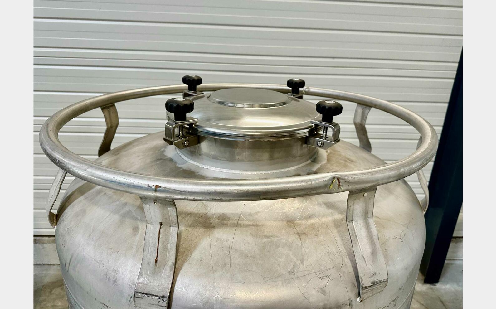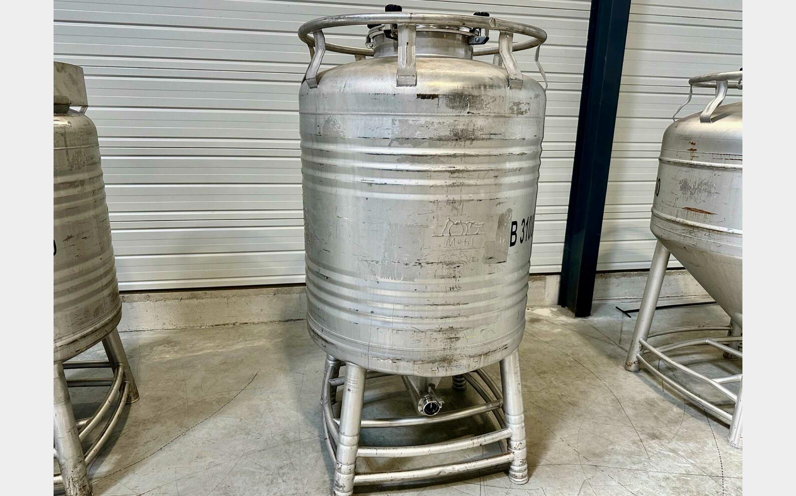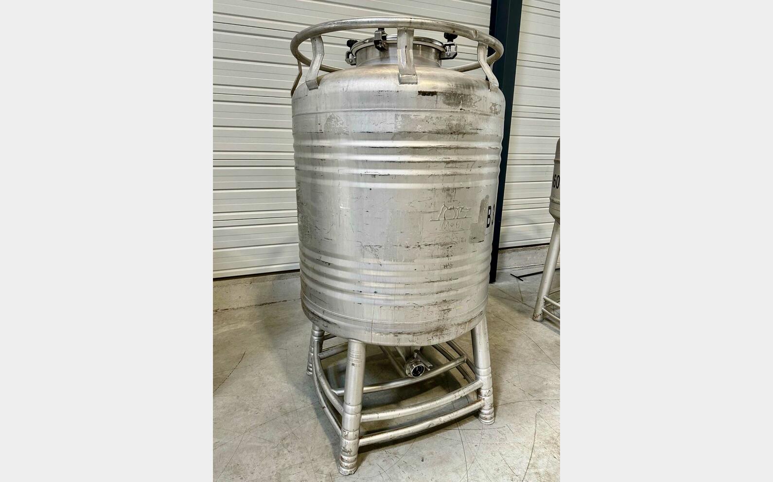 Stainless steel container 304L - Cylindrical on frame - 007383