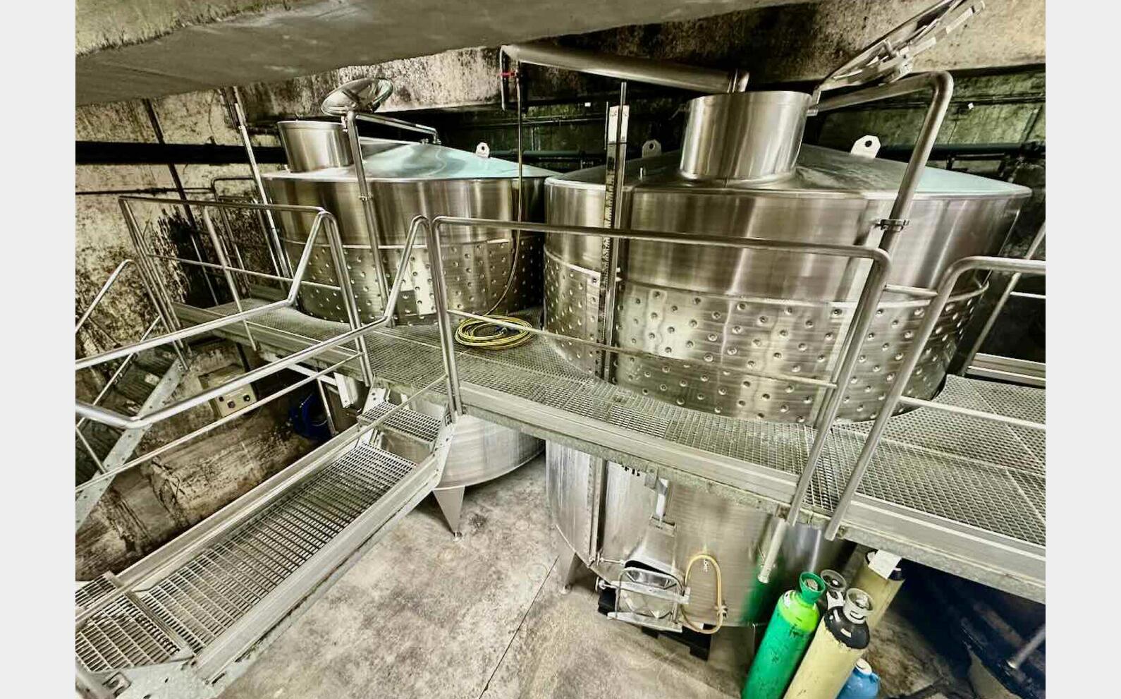 Temperature-controlled stainless steel tank - Sloped bottom on legs - 007614