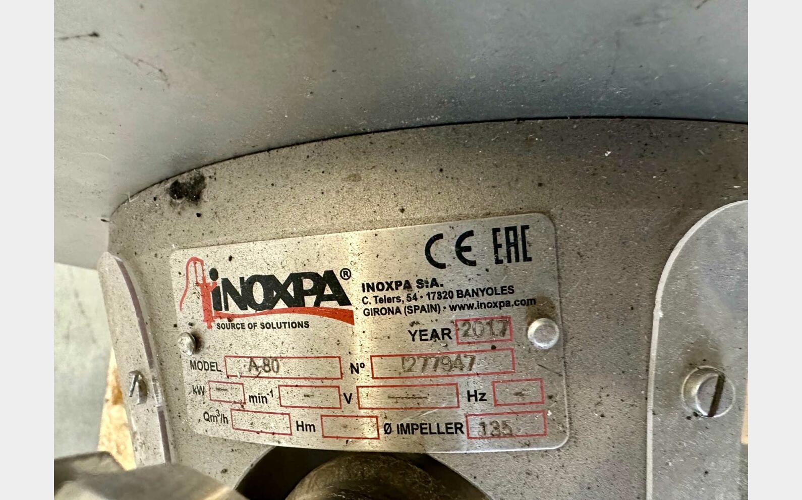 CARACTÉRISTIQUES TECHNIQUES- Cuve inox pour stockage tampon avec pompe INOXPA A80
