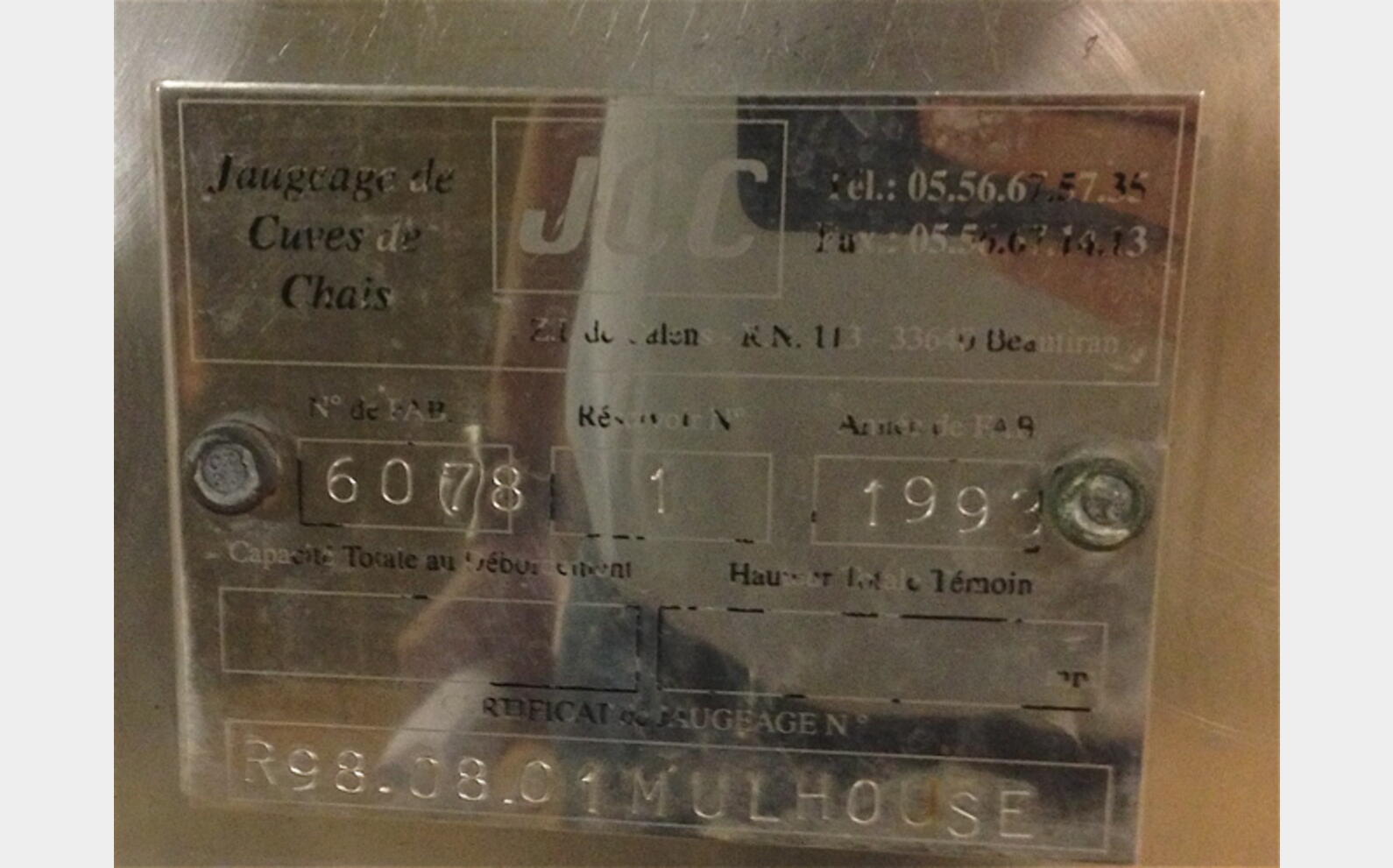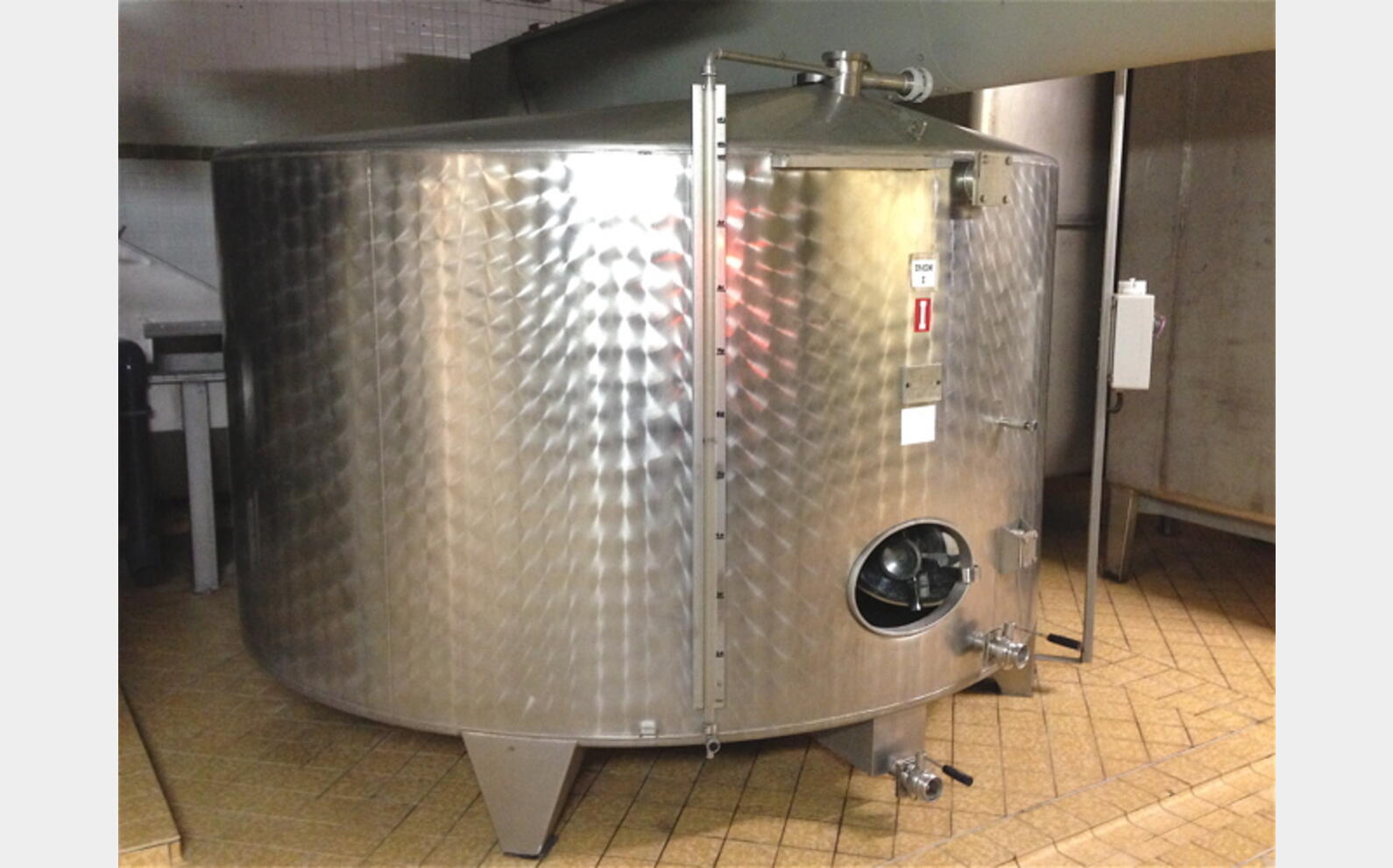 CARACTERISTIQUES TECHNIQUES : - cylindrique verticale sur pieds - trou d'homme en bas de virole - vidange totale avec vanne - vidange partielle avec vanne - tube de niveau - finition intérieure: LAF2B DIMENSIONS : - diamètre : 2800 mm - hauteur : 2200 mm