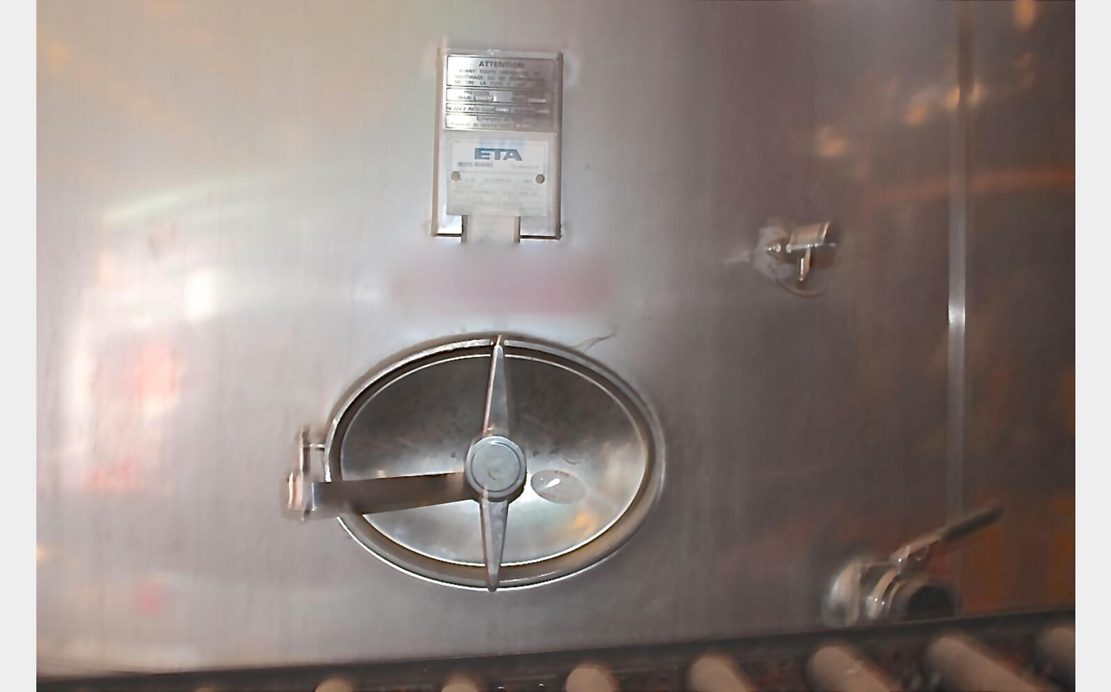 Cuve inox 316L fermée sur pieds - Volume : 40 000 litres (400 hectos) - 005033