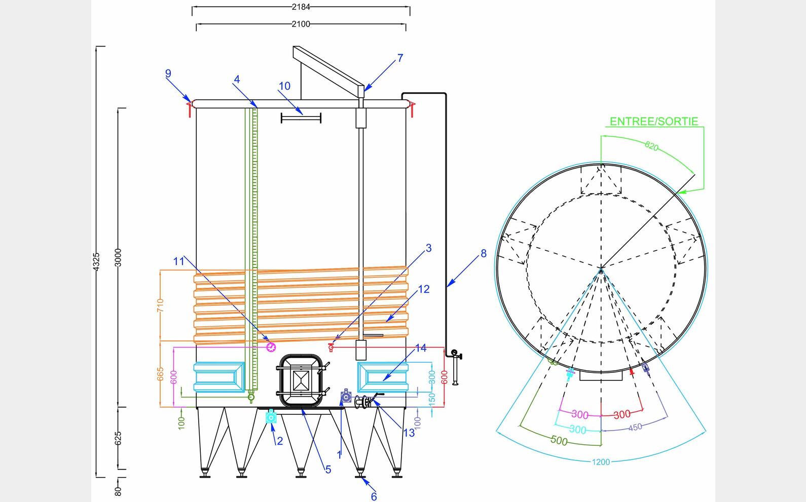 - hauteur cuve + pieds (625 mm) : 3625 mm (sans potence)