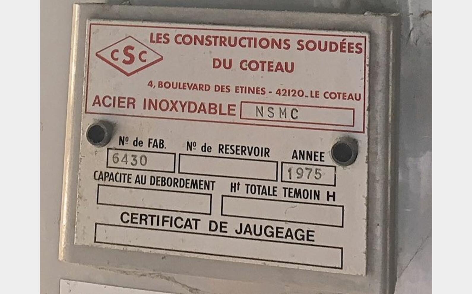 Descriptif cuve :
