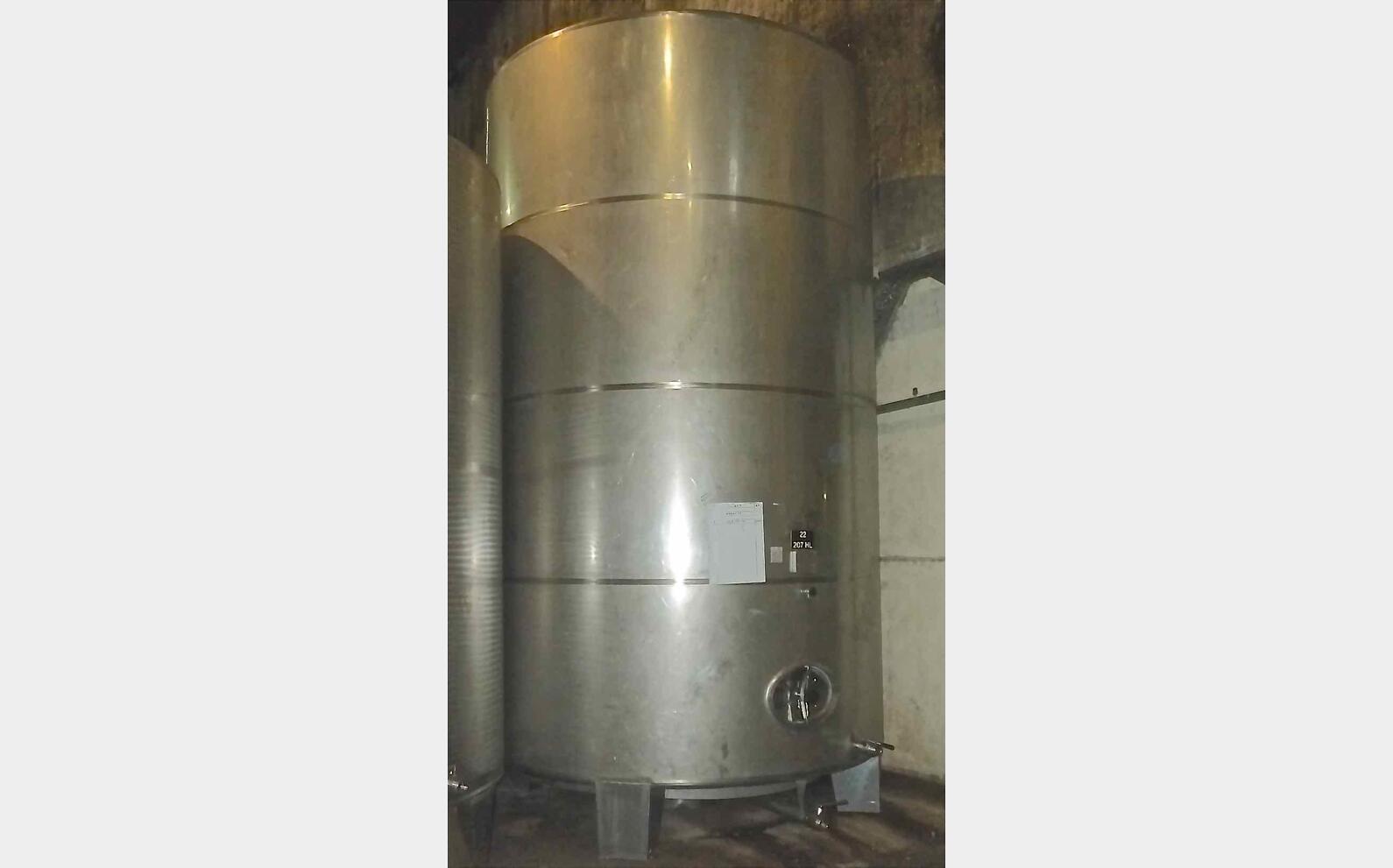 Cuve inox fermée sur pieds - Volume : de 207 hls (20 700 litres)