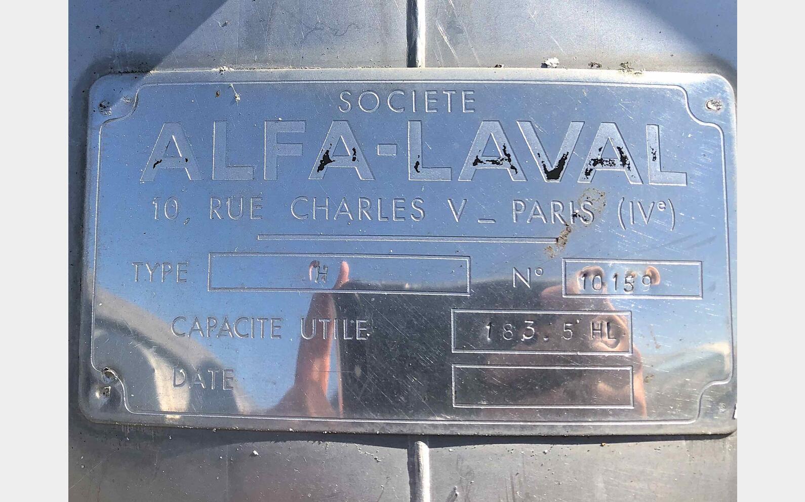 Cuve inox horizontale de 183,5 HLS - Marque : ALFA LAVAL - 005776