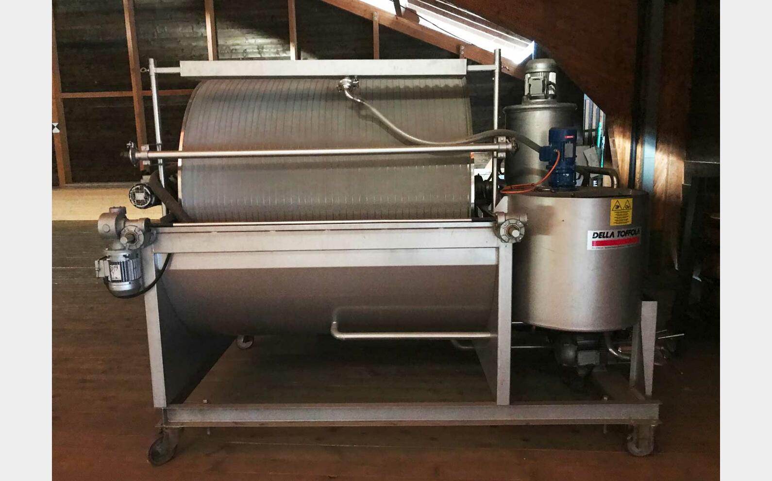 Ce filtre rotatif sous vide DELLA TOFFOLA est conçu pour la filtration des liquides en environnement vinicole et agroalimentaire. Sa configuration, associée à une capacité de filtration de 11 m², à un tambour rotatif et à un ensemble mobile complet, en fait une solution d’occasion robuste et immédiatement exploitable pour compléter une ligne de filtration en cave.