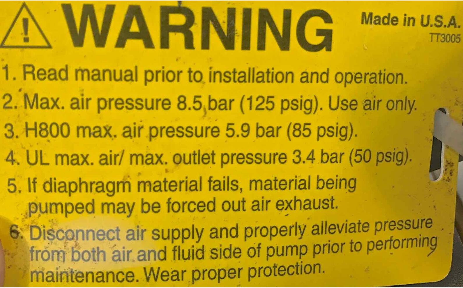 - pression air max. : 8,5 bar